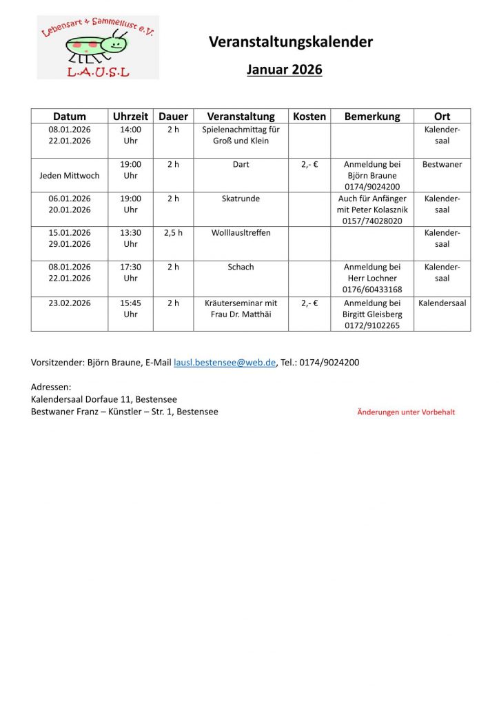 Hier findet ihr die Termine für unsere Gruppen und Veranstaltungen